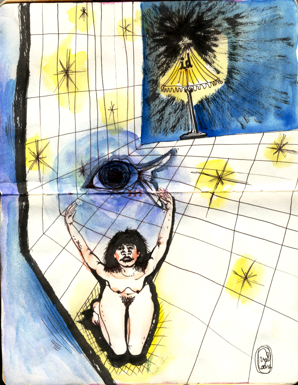 To that end, I a keeping a sketchbook solely dedicated to helping me in my investigations into colour, composition and synthesizing ideas about my dreams and the unconsciousness. Those quick sketches are done in less than five minutes each in front of the TV and using only my imagination. And they are great fun!